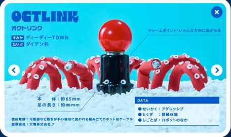 屈曲性・捻回性のあるロボットケーブルをタコの足に見立てられており、